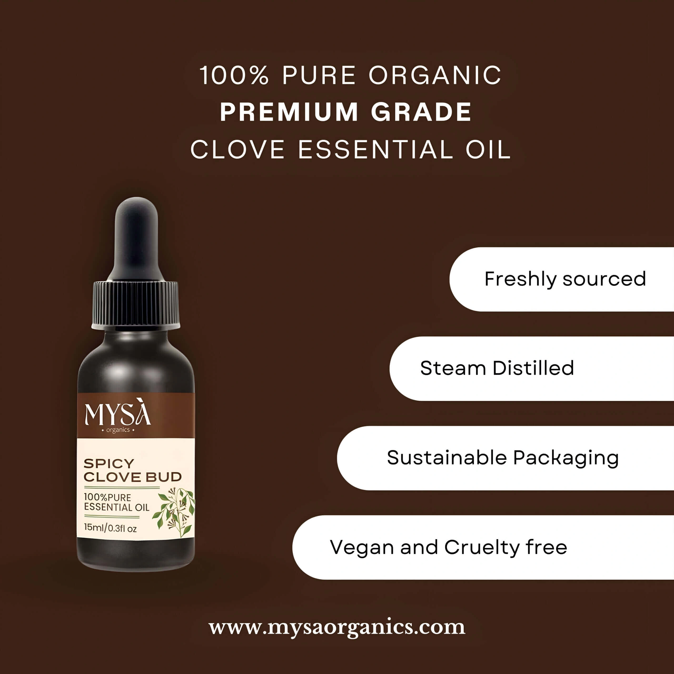 MYSÀ Organics bridges ancient wisdom with modern science. Our commitment to sustainable harvesting and precise testing methods ensures you receive the highest quality clove bud oil available. We work directly with farming communities to maintain ethical practices while delivering excellence to our customers.